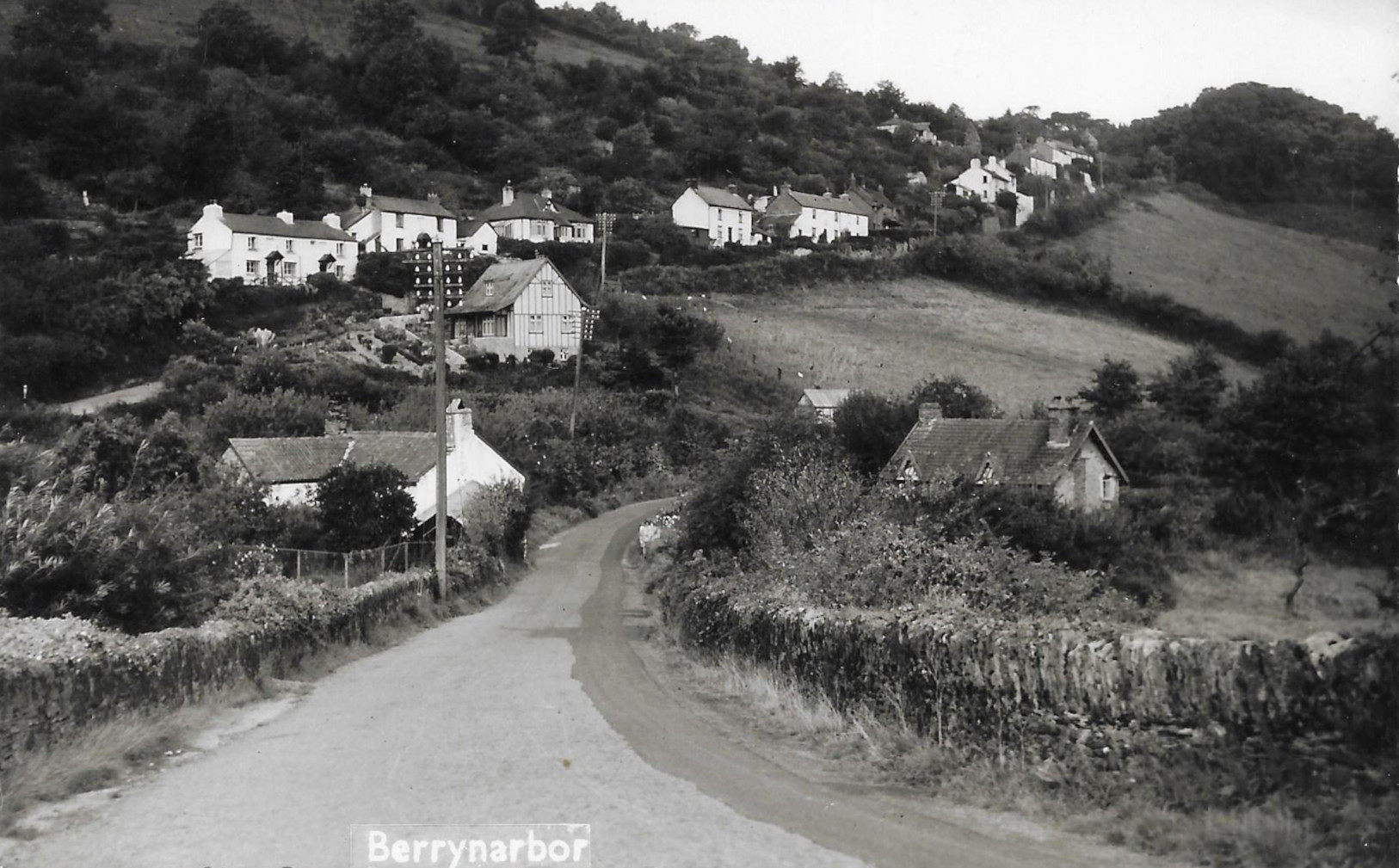 The cover for this Newsletter is a 'Real Photo' postcard be E.A. Sweetman & Son Ltd. of Tunbridge Wells. "2967 Berrynarbor Valley" was taken about 1926 and shows the lake at Mill Park and the tower of St. Peter's Church from the coastal hill above Sawmills. It was republished during the War years 1944-1946 and on the reverse has the words "Help to make the world a better place and life a worthier thing - King George VI".